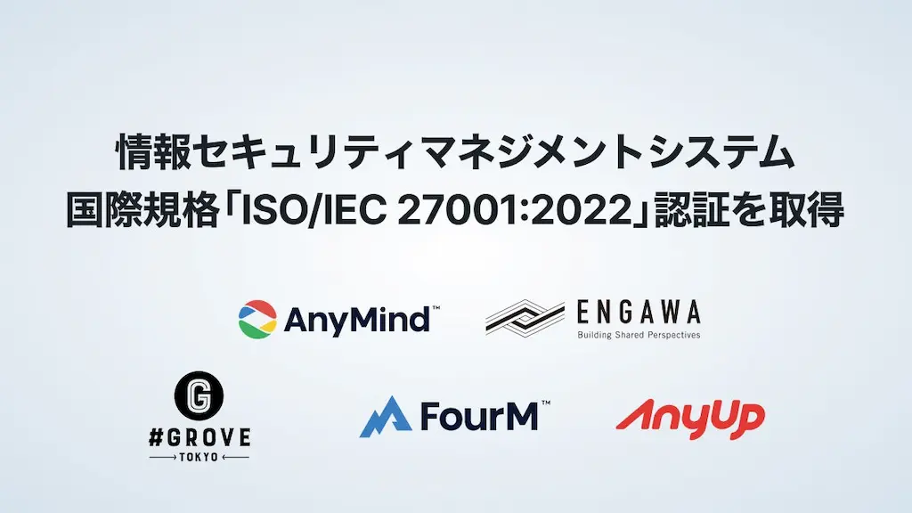 AnyMind Group株式会社(エニーマインドグループ、代表取締役CEO:十河 宏輔、以下「当社」)は、情報セキュリティマネジメントシステム(ISMS)の国際規格である「ISO/IEC 27001:2022」の認証を、日本国内の複数グループ企業において取得しました。