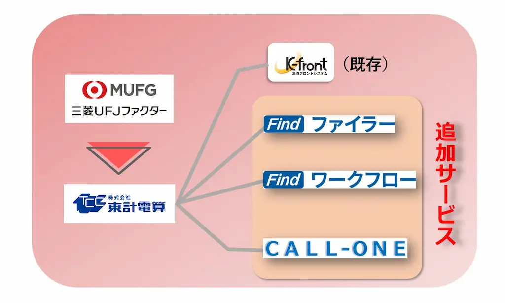 三菱UFJファクター株式会社(代表取締役:小川 浩一、以下、三菱UFJファクター)と株式会社東計電算(代表取締役:古閑祐二、以下、東計電算)は、従来業務提携をしていた「K-front」に加えて、2025年7月より新たに「Findシリーズ(ファイラー、ワークフロー)」および「Call-One」においても業務提携を開始することをお知らせいたします。