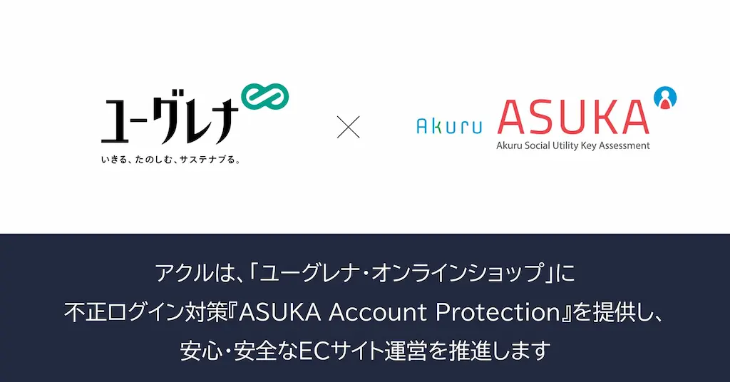 株式会社アクル(本社:東京都港区、代表取締役社長:近藤 修、以下「アクル」)は、株式会社ユーグレナ(以下「ユーグレナ社」)が運営するユーグレナ・オンラインショップへの不正ログイン対策「ASUKA Account Protection」の提供を開始しました。