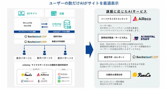 株式会社ecbeingでは、こうした時代のニーズに応えるべく、お客様のさまざまな課題解決に寄与する多様なAIサービスを展開しています。