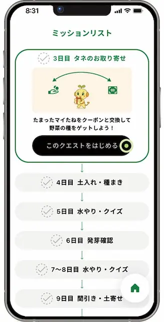 - クイズなどのクエストで集めたタネがクーポンに交換でき、ECサイト「grow STORE」でのタネの購入に利用可能です。
