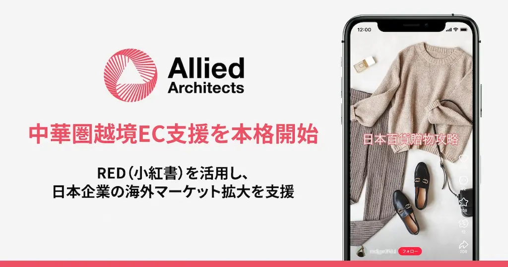 データとクリエイティブの力でマーケティングコミュニケーションを設計し、企業のマーケティングAXを支援するアライドアーキテクツ株式会社(本社:東京都渋谷区、取締役社長:村岡弥真人、証券コード:6081、以下「当社」)は、中華圏向け越境EC支援サービスを本格的に開始いたしました。本サービスは、SNSプラットフォーム「RED(小紅書)」を活用し、日本企業が中華圏市場でのブランド認知・販売チャネルを拡大することを支援するものです。