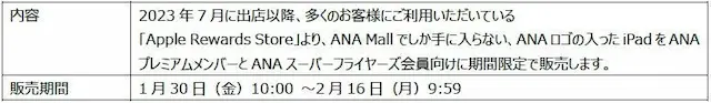 - ANAプレミアムメンバー&ANAスーパーフライヤーズ会員限定でANAロゴ刻印版iPadを販売
