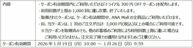 - ANA Mall新規利用登録&ANA Mallメールマガジン新規登録でもれなくボーナスマイルをプレゼント