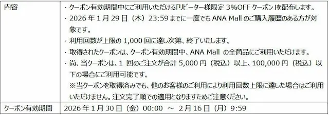 ANA Mall 3周年記念キャンペーンのお知らせ