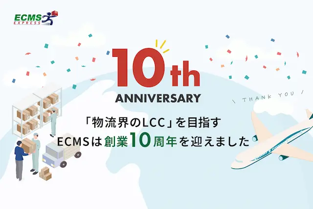 株式会社ECMSジャパン(本社:東京都中央区、代表取締役社長:小松英樹)は、2026年1月に創業10周年を迎えたことをお知らせいたします。これまで支えていただいたお客様、パートナー企業、関係者の皆様に深く感謝申し上げるとともに、越境EC物流の低コスト・高品質・シンプルなサービス提供を通じて、これからも「物流界のLCC」として価値創造を続けてまいります。