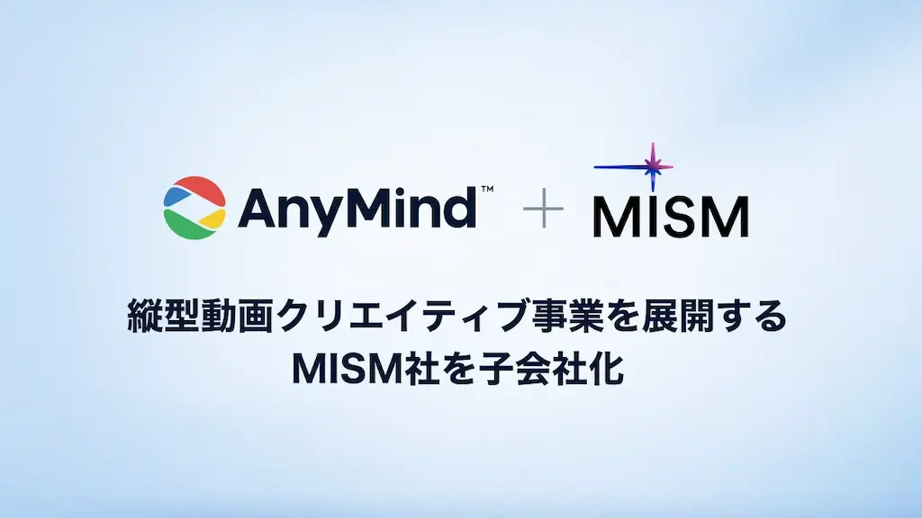 AnyMind Group株式会社(読み:エニーマインドグループ、代表取締役CEO:十河 宏輔、以下「当社」)は、縦型動画広告に特化したクリエイティブ制作事業を展開する株式会社MISM(読み:ミズム、代表取締役:羽部 千織、以下「MISM社」)の全株式を取得し、子会社化したことをお知らせします。